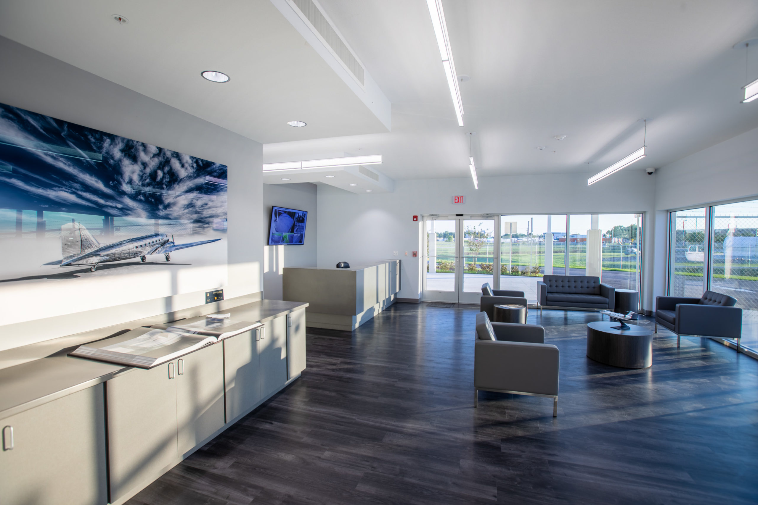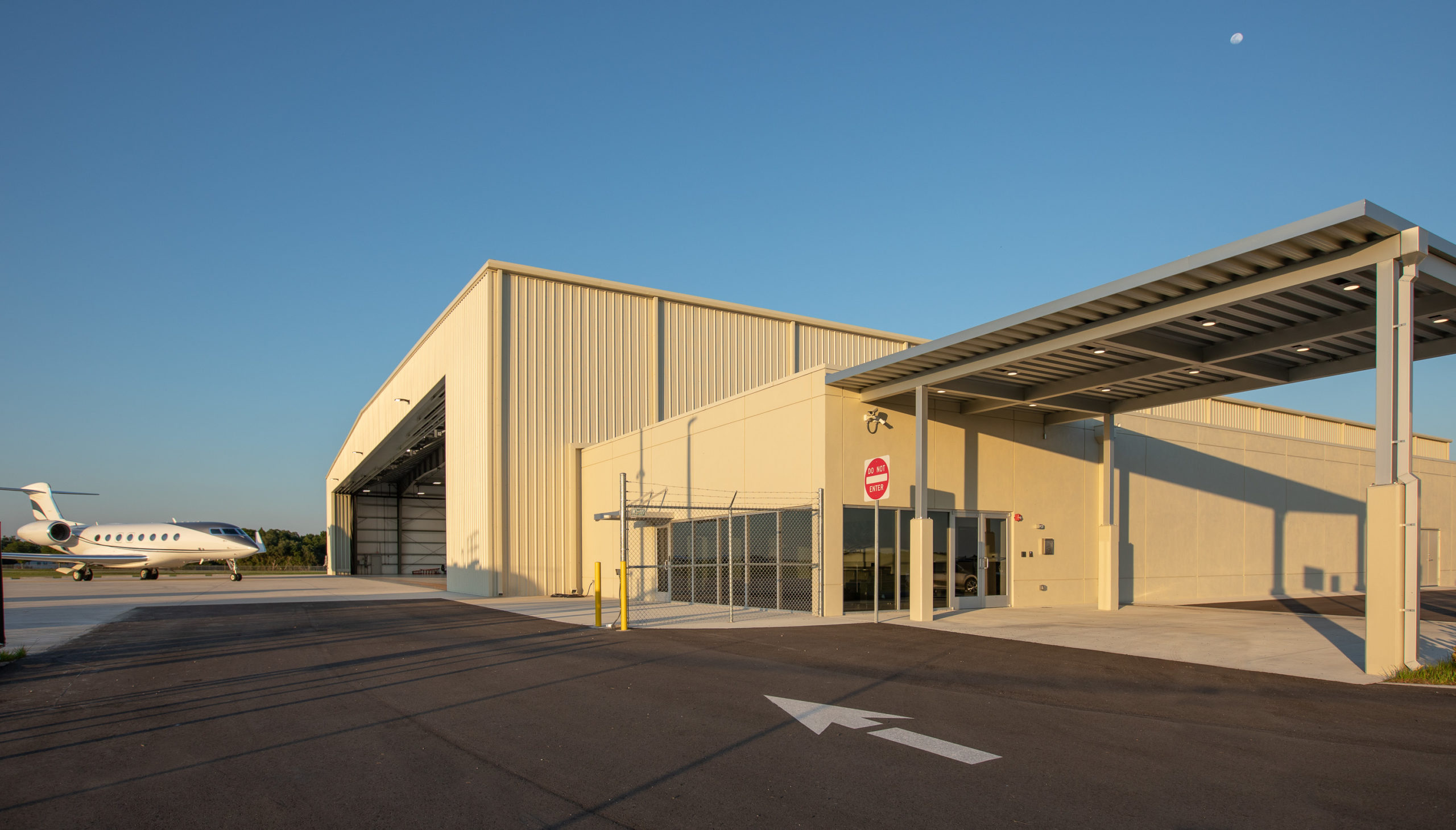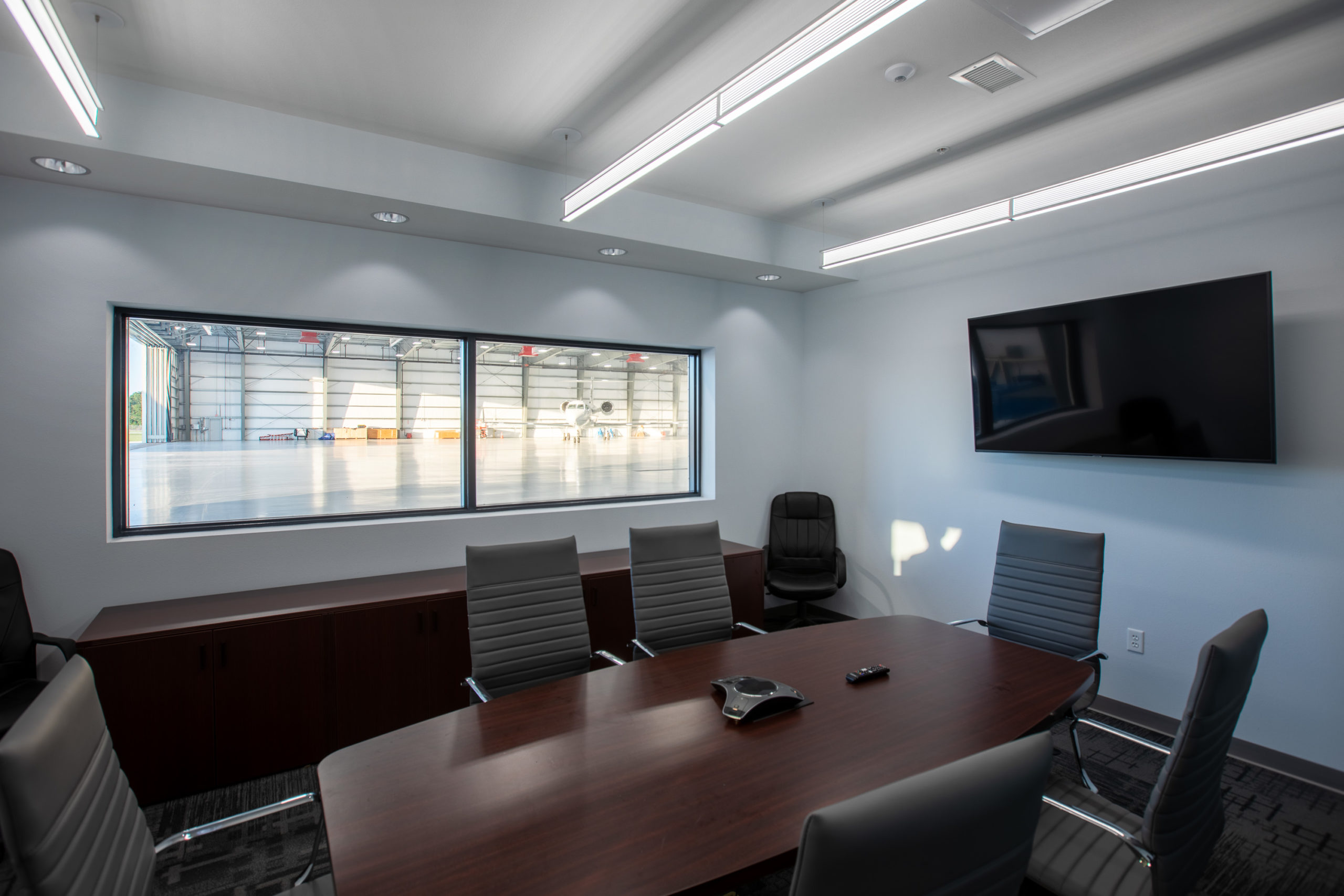 The 59,000 SF hangar facility, with 28′ hangar door clearance, includes space for 6 corporate jet aircraft, 4,000 SF of premiere office space, a video conferencing room and a luxurious passenger waiting room. The facility contains a foam fire supression system and epoxy floors. Emergency backup generators ensure hangar operations can continue during a power outage for up to 15 days.